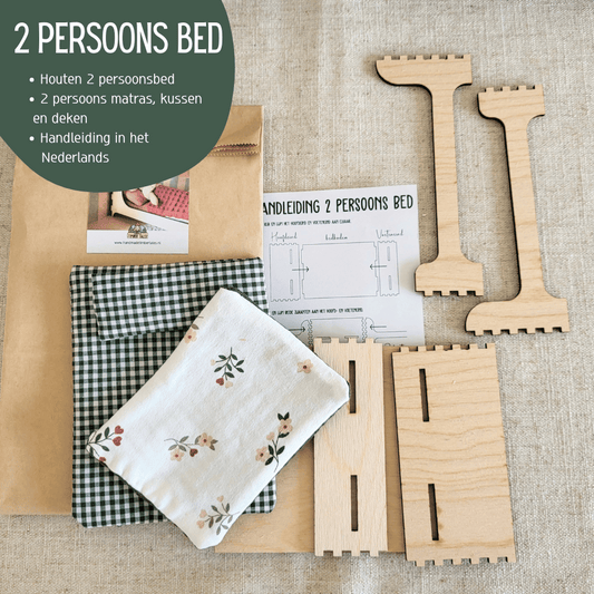 Poppenhuis 2 persoons bed - 2 persoonsbed, dubbel matras, kussens en deken.